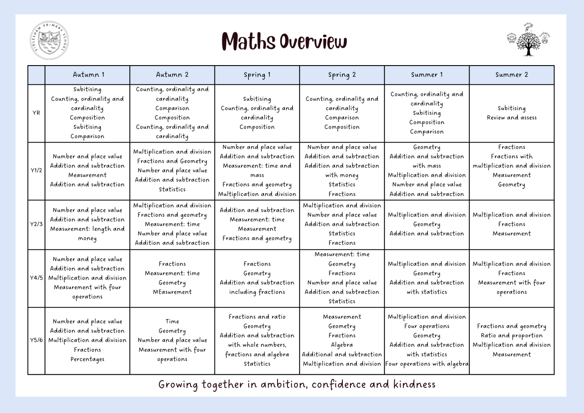 At Sidlesham Primary School, our maths curriculum is designed to develop confident, resilient and fluent mathematicians who can apply their skills to real-life contexts. We follow a spiral curriculum using the HIAS Scheme of Learning, which means pupils revisit key areas of maths (such as number, calculation, and geometry) throughout the year, each time building on and deepening their understanding. Our intent is for children to become fluent in number facts, reason mathematically, and solve problems with increasing independence. We want all pupils to see themselves as capable mathematicians who can explain their thinking clearly, make connections across mathematical ideas, and enjoy the challenge of learning through mistakes and successes.